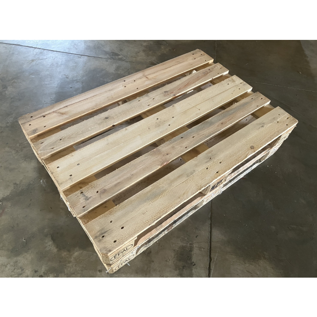 歐式環保棧板(八成新)規格為 120×80 公分(EUR 標準尺寸),適用多種倉儲與貨架設備。結構完整、板材堅固,能應付一般工廠的日常出貨與堆疊需求。